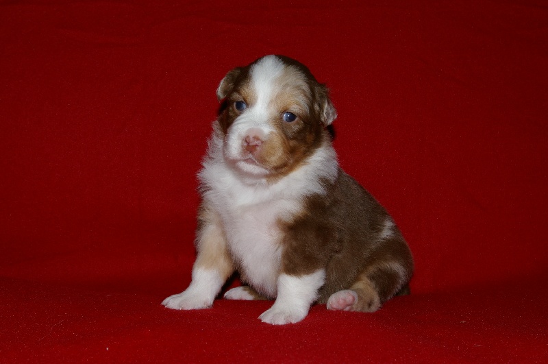 une magnifique femelle rouge merle, très dispose, qui a la chance de pouvoir vivre avec une éthologue/comportementaliste...
