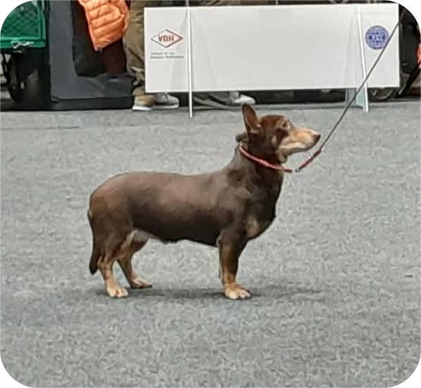 Good size and format, typ head and expression, stron ear, very strong neck and topline, corr tailset, deep chest, enough corr front, strong rear and angulations, typ movement, typ coat and temperament